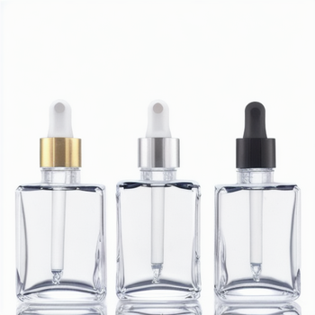 Bouteille en verre rectangulaire de 30ml avec épaulement plat Finition galvanisée givrée Emballage à vis en bambou-Personnalisable