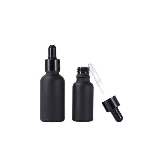 Flacon compte-gouttes en verre de 15ml Bouteille d'huile essentielle sérigraphiée en forme de rectangle givré noir Fabriqué en Chine FK