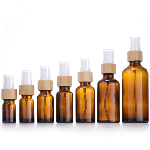 Großhandel 30ml rechteckige Bernstein glasflasche mit Bambus kappe Tropfer für ätherische Öle Körperpflege Siebdruck oberfläche